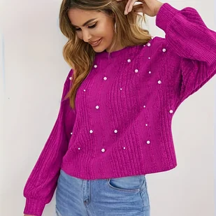 TEMU Modny, codzienny top damski z koralikami i bufiastymi rękawami, idealny na jesień i zimę.