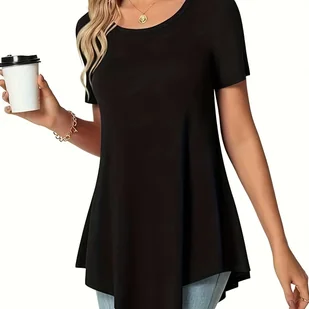 TEMU Koszulka Damska Casual z Krótkim Rękawem - Jednokolorowa, Okrągły Dekolt, Elastyczna , Lekka i Oddychająca na Wiosnę/Jesień, Uniwersalny Styl,