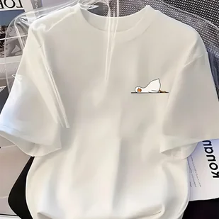 TEMU Koszulka Damska Y2K z Uroczym Kaczorem - Krótki Rękaw, Luźny Fason 180gsm Poliester na Wiosnę/, Pranie Maszynowe, Wielokolorowa, Casual, Miękki