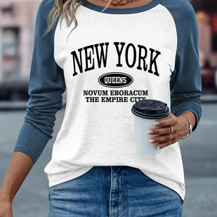 TEMU Koszulka Damska z DナVgim Rト冖awem - Kolorowy Blok Beナシowo-BiaナZ, Pranie Maszynowe, Casualowa Bluzka na Wiosnト�/Jesieナ�, TrwaナB Tkanina