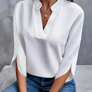 TEMU Modna bluzka damska, jednokolorowa koszula z wycięciem pod szyją i 3/4 rękawami, casualowa na wiosnę i
