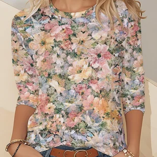 TEMU Planowany Bestseller Koszulka z Nadrukiem Graficznym, Codzienna Moda, Casual Wszechstronna, Elementy Kwiatowe, Kolorowy Nadruk Kwiatowy, Damska