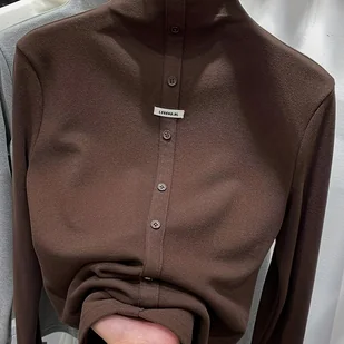 TEMU Stylowa Koszulka Damska z Długim Rękawem, Dekoracyjna, Ciepła i Wygodna, z Wieloma Guzikami, Podkaszulka, T-Shirt