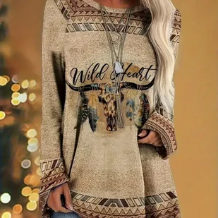 TEMU Wiosenno-Jesienna Casualowa Bluzka Damska z Okrągłym Dekoltem, Długi Rękaw, Nadruk Cyfrowy, Krótki Przód, Długi Tył, Tapered Casual T-Shirt