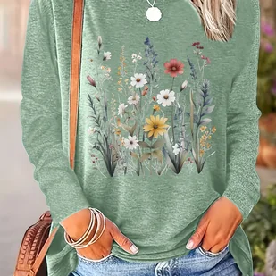 TEMU Sweter Damski w Kwiatowy Wzór - Miękka Pastelowa Kolorystyka w Turkusowym Zielonym, Okrągły Dekolt z Długim Rękawem na Codzień i Na Uroczystości