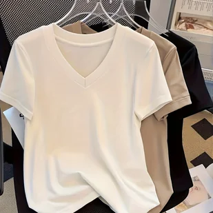 TEMU Zestaw 3 damskich koszulek z krótkim rękawem i dekoltem w serek, uniwersalne, codzienne T-shirty w jednolitym kolorze