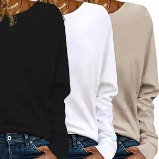 TEMU Zestaw trzech jednokolorowych bluzek z długim rękawem