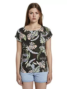 TOM TAILOR Denim Damski Bluzka tunika z krótkim rękawem z detalami na plecach 1018683, 22710 - Black Tropical Print, XS