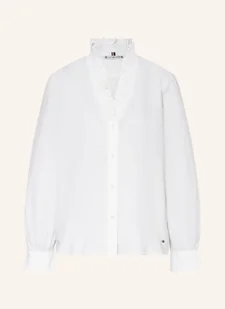 Prosty krój. Dekolt w serek z falbankowym obszyciem. Zapięcie przy pomocy gładkiej listwy guzikowej na całej długości. Mankiet z jednym guzikiem. Zaokrąglony rąbek.