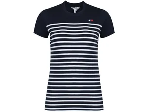 Producent: Tommy Hilfiger Model: TH10065-004 Kolor: granatowy, biały Materiał: 95% bawełna organiczna, 5% elastan T-shirt w paski. Na przodzie naszywka z log...
