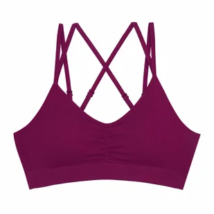 Top Bloovii Kyleena to połączenie sportowej lekkości i kobiecego uroku. Delikatnie prążkowany materiał w głębokim, śliwkowym odcieniu subtelnie podkreśla linię biustu, dodając całości nowoczesnego charakteru. Bezszwowa konstrukcja otula ciało komfortem, a wyjmowane wkładki pozwalają dopasować stopień podkreślenia kształtów. Cienkie ramiączka krzyżujące się na plecach tworzą finezyjną linię, która dodaje projektowi dynamiki i zmysłowej subtelności. wyjmowane wkładki w miseczkach