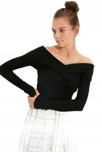 TRENDYOL CZARNA BLUZKA DOPASOWANA Z DEKOLTEM OPUSZCZANYM 42 5BA