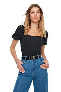 Trendyol Damska bluzka dzianinowa z kwadratowym kołnierzem, Czarny, M