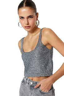 Trendyol Damska bluzka z dzianiny o regularnym kroju z kwadratowym kołnierzem, szara, M, szary, M