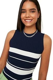 Trendyol Damska bluzka z dzianiny z okrągłym dekoltem, granatowy, S