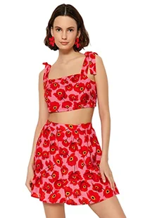 Trendyol Damska bluzka z kwiatowym wzorem, dwuczęściowy zestaw, koszula, Czerwony-wielokolorowy, 8