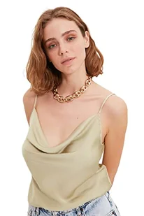 Trendyol Damska bluzka z regularnym dekoltem i dekoltem, Miętowy, 64