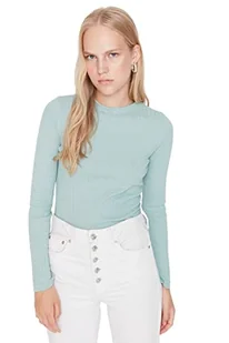 Trendyol Damska dopasowana obcisła dzianinowa bluzka z okrągłym dekoltem, Miętowy, XS