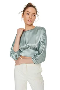 Trendyol Damska dopasowana podstawowa bluzka z okrągłym dekoltem, miętowa, 36, Miętowy, 62