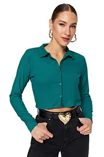 Trendyol Damska dopasowana standardowa koszula kołnierz dzianinowa bluzka, ZIELONY, M