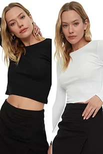 Trendyol Damska regularna standardowa dzianinowa bluzka z okrągłym dekoltem, Czarny - biały, XL