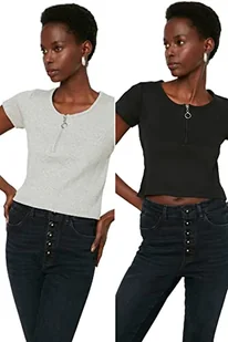 Trendyol Women's czarny i szary zamek błyskawiczny, szczegółowy Flyillate 2-pak, dziergana bluzka, czarno-szara, rozmiar L