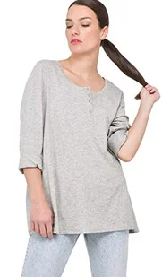 Ulla Popken Damska koszulka z listwą guzikową, bluzka z długim rękawem, jasnoszary, 50-52