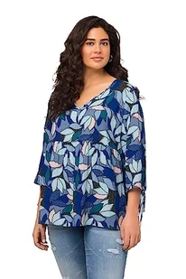 Ulla Popken Damska tunika z nadrukiem liści bluzka, morski, 46/48