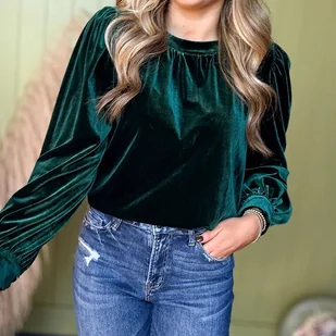 Welurowa damska bluzka z długim rękawem - Zielony XL