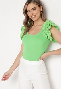Zielony Top z Falbankami przy Ramionach Luciya