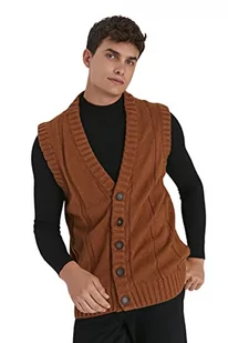 TRENDYOL Męska kamizelka z dekoltem w serek, jednokolorowa, regularna, bluza, brązowa, L, brązowy, L
