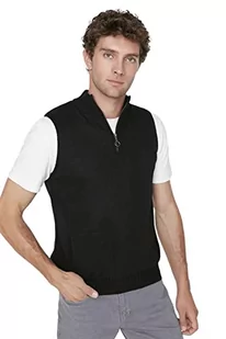 TRENDYOL Męska kamizelka z dekoltem w serek, jednokolorowa, regularna, z dzianiny, czarna, L, czarny, L