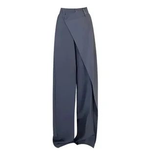Asymetryczne spodnie damskie oversize z warstwami - Szary