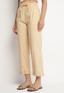 Beżowe Bawełniane Spodnie z Wysokim Stanem i Ozdobnym Wiązaniem Vilwia