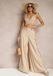 Beżowe Szerokie Spodnie Casualowe z Gumką w Pasie Indala