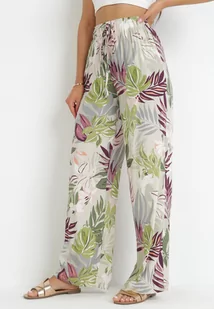 Beżowe Szerokie Spodnie z Wiskozy w Kwiaty Naomie