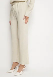 Beżowe Szerokie Spodnie z Wiskozy z Wiązaniem w Talii Lilriz
