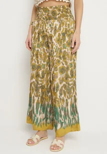 Beżowo-Żółte Wiskozowe Spodnie o Szerokim Kroju z Wysokim Stanem Ellivana