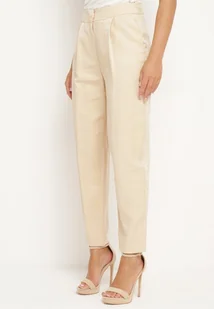 Beżowe Wiskozowe Spodnie Zapinane na Suwak Ozdobione Metaliczną Nicią Nolnesta