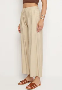 Beżowe Wiskozowe Szerokie Spodnie z Wysokim Stanem Divola