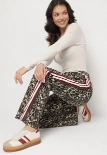 Beżowo-Brązowe Jeansy z Bawełny o Szerokim Kroju Ozdobione Lampasami Eliniae