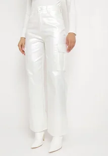Białe Spodnie Bojówki z Metalicznym Połyskiem i Bocznymi Kieszeniami Ommess