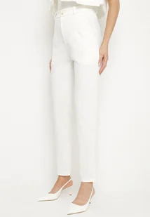 Białe Spodnie Garniturowe z Wiskozą z Wysokim Stanem i Kieszeniami Senolira
