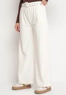 Białe Szerokie Sztruksowe Spodnie z Wysokim Stanem i Materiałowy Paskiem Omerin