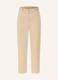 Wysoki stan. Zwężane do dołu, skrócone nogawki. Zapięcie na guzik i zamek błyskawiczny. Boczne kieszenie wpuszczane. Kieszenie z wypustką. Wyraziste szwy. Czysta bawełna