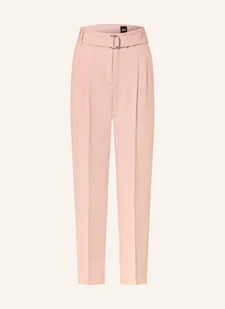 Wysoki stan. Zwężane do dołu, skrócone nogawki. Zapięcie na guzik i zamek błyskawiczny. Zdejmowany pasek. Modelujące sylwetkę zakładki.
