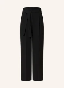 Wysoki stan. Proste nogawki. Zapięcie na zamek błyskawiczny. Ze zdejmowanym paskiem i szlufkami. Modelujące sylwetkę zakładki. Boczne kieszenie wpuszczane. Kieszeń z wypustką z tyłu