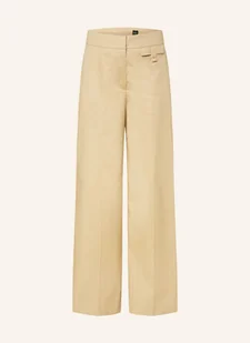 Wysoki stan. Proste nogawki. Zapięcie na guzik, haftkę i zamek błyskawiczny. Boczne kieszenie wpuszczane. Kieszeń z wypustką z tyłu. Ozdobna kieszeń w rąbku. Kanty. Elastyczna bawełna