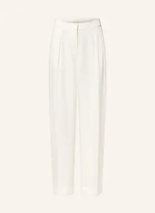 Wysoki stan. Zwężane do dołu nogawki. Zapięcie na haftkę izamek błyskawiczny. Modelujące sylwetkę zakładki. Boczne kieszenie wpuszczane. Ozdobne kieszenie z wypustką z tyłu. Przyszyte podwinięcia przy nogawkach. Gładki materiał