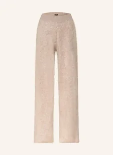 Wysoki stan. Szerokie nogawki. Elastyczny pas w talii. Puch. Puszysty w dotyku materiał. Czysty kaszmir